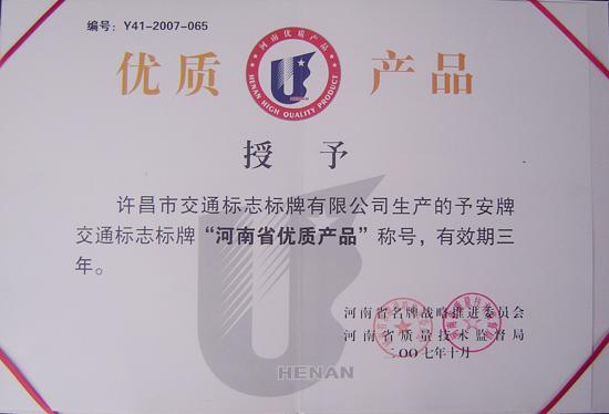 公司優(yōu)質(zhì)產(chǎn)品證書(shū)