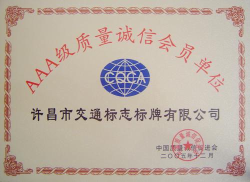 公司AAA級質(zhì)量誠信會(huì )員單位證書(shū)